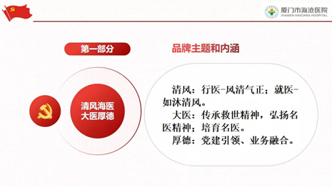 “清风海医 大医厚德”围绕党建品牌、三创品牌、管理品牌、历史文化品牌、职工文化品牌等5个子品牌进行了建设。